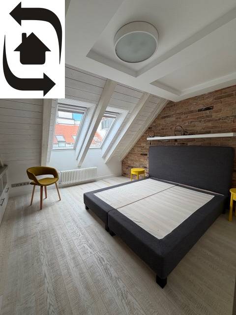 Zobraziť fotogalériu (13 fotografií) Medená ulica (Staré Mesto, BA I.) - na prenájom 4 izbový klimatizovaný podkrovný mezonetový byt s priestrannou terasou, byt o výmere 115 m2 v historickom kompletne zrekonštruovanom dome na 4.posch./4 s výťahom s výhľadom na Bratislavský hrad a Staré Mesto.